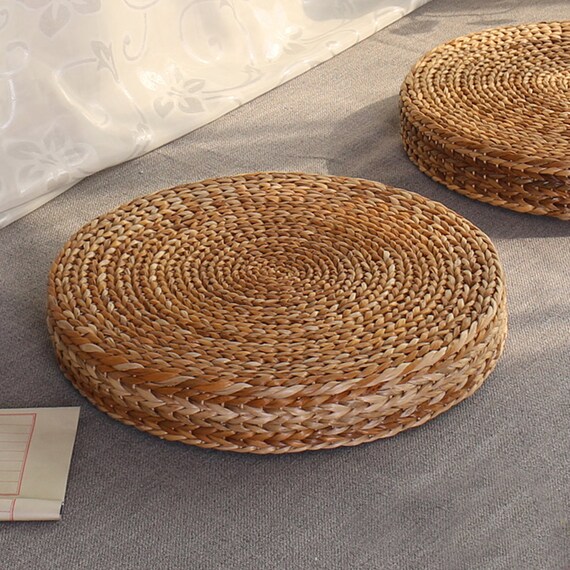 Round Rustic Floor Cushions Zafu Zabuton Floor Pouf Straw Pouf Etsy